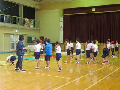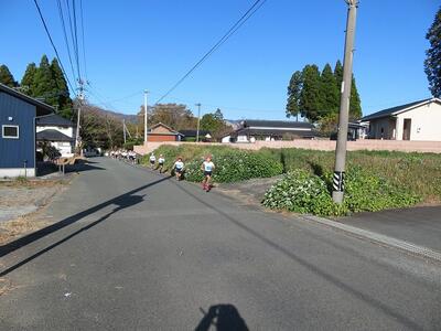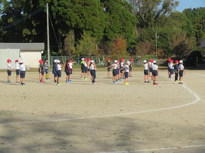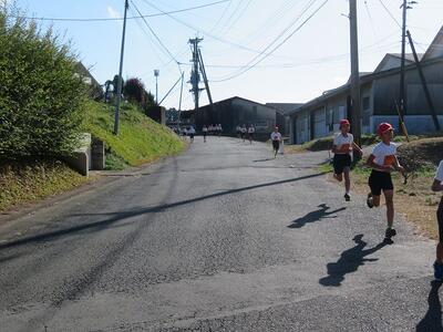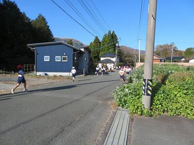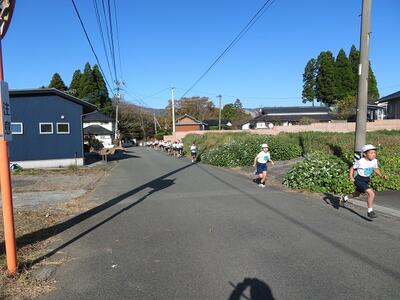 11月の中旬から持久走大会に向けた練習が始まっていますが、今日からいよいよコースに出ての練習が始まりました。今日は、2時間目に中学年3・4年生が道路に出てコース練習をしました。みんな元気よく走っていました。