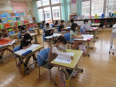 2時間目の授業です。(一部)1年生は算数、おおきなかず