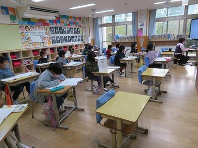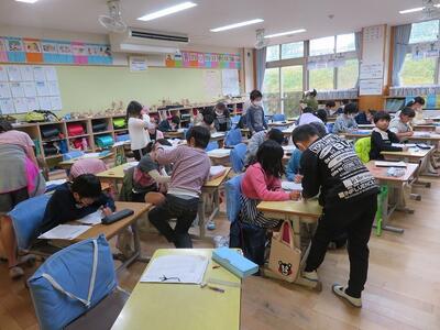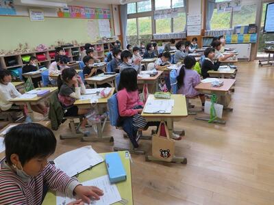2時間目の授業です。(一部)1年生は算数、おおきなかず