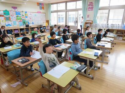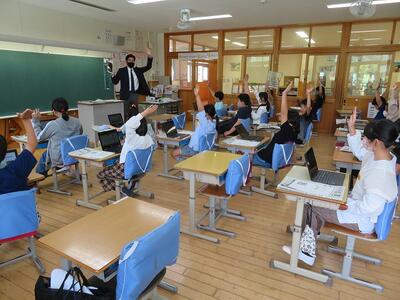 1年生は、外国語活動が行われ、英語でじゃんけんをしていました。