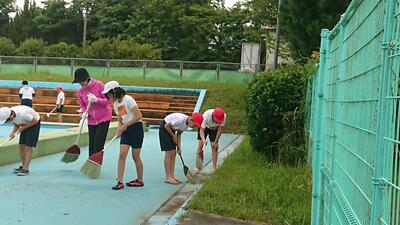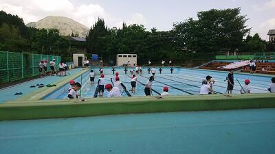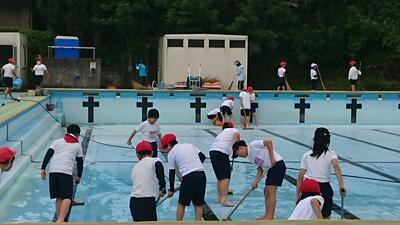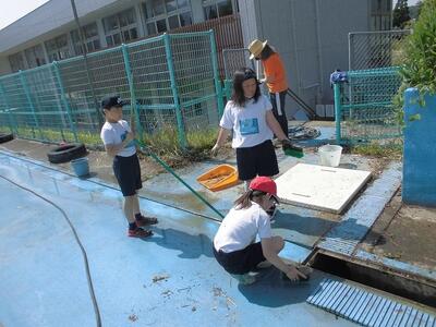 午後からは、プール掃除が行われ、5・6年生がプールを綺麗にしてくれました。