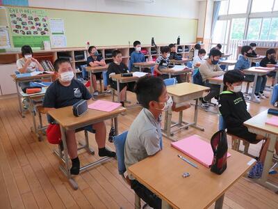 1時間目の様子です。修学旅行から帰ってきた6年生は、早速振り返りが行われていました。みんな真剣な表情で、二日間を振り返っていました。