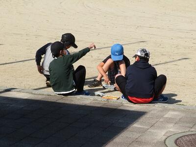1時間目、5年生が石に絵や文字などを楽しそうに描いていました。
