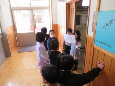 今朝も1年生があいさつ運動の場所にたくさん集まってくれました。