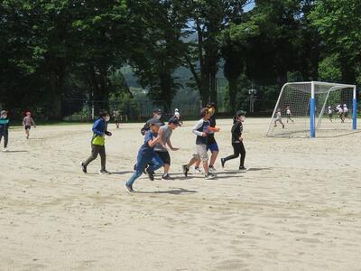 業間のランランタイムです。みんな元気に走っていました。5月、心地よい風が吹いてきて、子どもたちも楽しそうに走っていました。