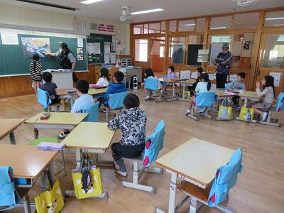 1年生は、外国語活動が行われ、英語でじゃんけんをしていました。