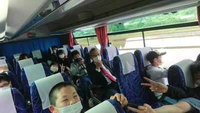 修学旅行へ出発しました。今朝は、早朝より保護者の皆さんや先生方に見送っていただきありがとうございました。今日から2日間、修学旅行という行事を通して、学びと思い出をたくさん作ってきます。結団式・バスの様子です