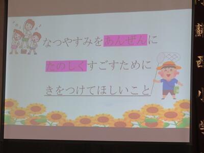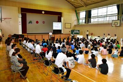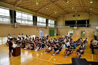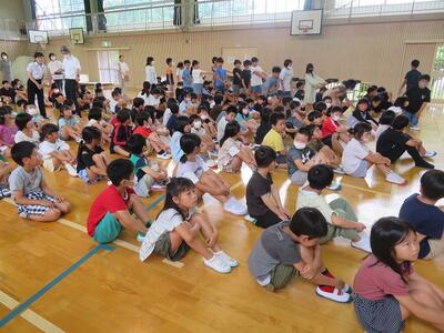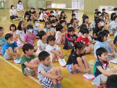 全校児童が体育館に集まっての終業式でしたが、子どもたちの態度がとてもよかったです。明日から38日間の休みとなります。健康・安全に注意して思い出に残る夏休みになることを願っています。