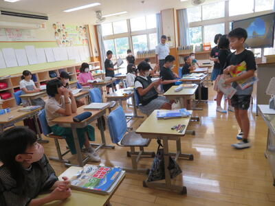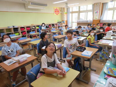 2学期がスタートしました。久しぶりに子どもたちと会うと元気が出ます。みんなのいい笑顔を見ることができました。登校する子どもたちの何人かに夏休みのことを聞くと、みんな「楽しかった」「思い出ができた」と答えてくれました。充実した夏休みだったのでしょう。今日の始業式は暑さのため体育館で行いました。式では、6年生の代表2人が、2学期の抱負を発表しました。とても立派な内容でした。式が終わると3名の子どもたちの転入を紹介しました。139名で2学期がスタートしました。学校の様子です。