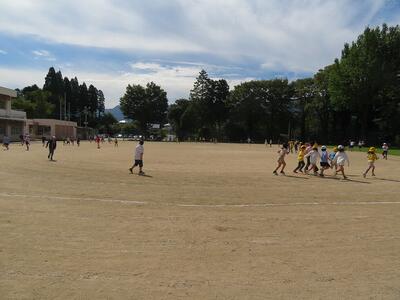 昼休み、外で遊ぶには絶好の日和でした。運動場で多くの子どもたちが遊んでいました。
