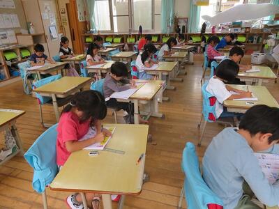 今日の就学時健診では、来年度最上級生となる5年生がお手伝いをしてくれました。それぞれがいろいろな役目を受け持ち、素晴らしい働きぶりでした。