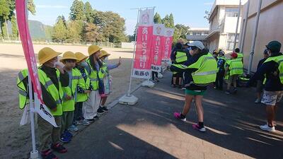 今朝は涼しいというより寒いが当てはまるような朝でした。朝の学校は10℃でした。子どもたちの服装も長袖や上着を着てきた子どもたちが多かったです。寒さを感じた朝ですが、元気にあいさつ運動を頑張った子どもたちもいました。1年生と2年生が参加し、カードをもらっていました。