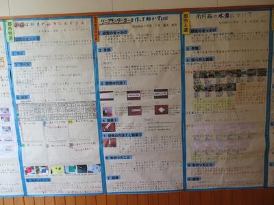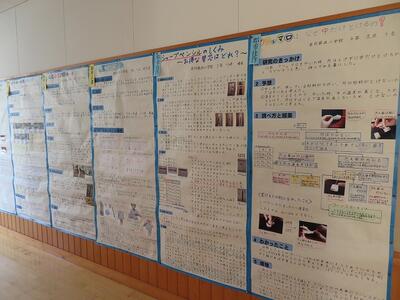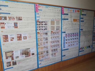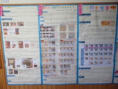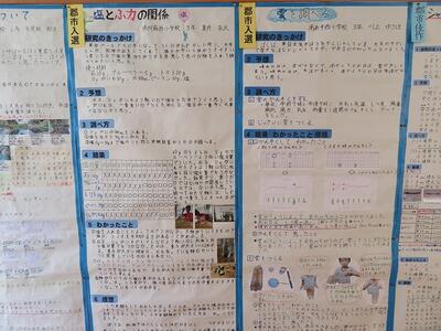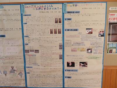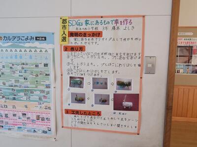 理科室前には、10月前半に行われた郡市科学展発明工夫展に出品した子どもたちの作品が掲示してあります。