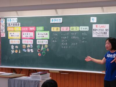 昨日の5・6時間目、6年生の家庭科では、1食分の献立作りを学習しました。献立作りといえば、給食の先生です。ゲストティーチャーとして白水小学校の栄養教諭坂本先生をお迎えしました。