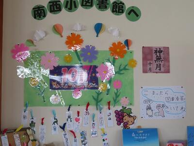 10月になり掲示物も変わっています。保健室前児童昇降口の掲示物です。