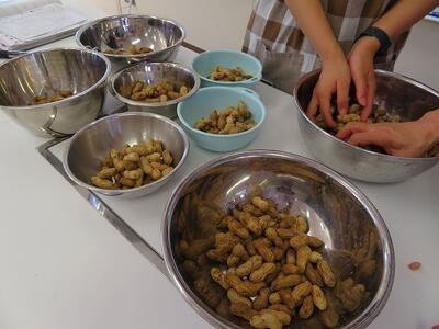 4年生は、南西フィールドで育て、収穫していた落花生を煎る活動をしました。最後は落花生を食べました。