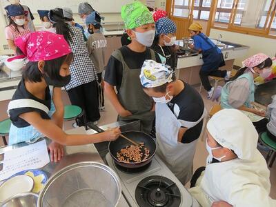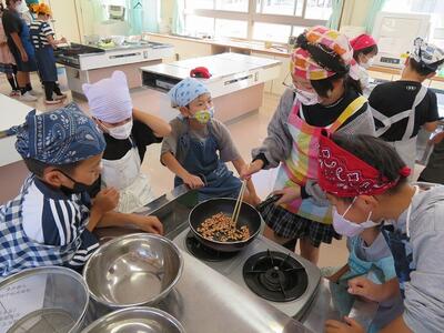 6年生の反応も良く、2時間があっという間に過ぎていきました。6時間目には、子どもたちも1食分の献立を作ることができました。