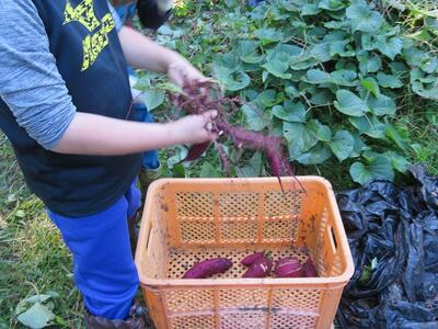 小さいものから大きいものまでコンテナ二つ分ぐらい収穫できました。大きくても小さくても土の中から出てくると大喜びの2年生でした。