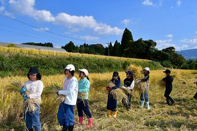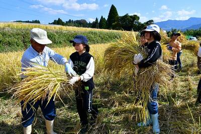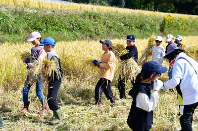 多くの方々の協力で収穫ができました。米作りを通して、地域から学び、地域のよさも感じることができました。