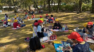 今日、1年生の生活科は、バスで校区のアーデンホテルに行きました。目的は、秋の植物を探すことでした。現地ではゲストティーチャーの瀬井先生から、植物の名前や特徴を教えてもらいました。たくさんの植物を見つけた子どもたちは、とても嬉しそうでした。