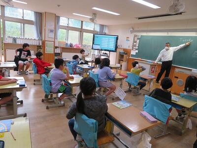2時間目、3年生の外国語活動がありました。曜日、12か月、形の言い方などを学習しました。途中、歌やリズム遊びもあり、たくさん英語で話していました。