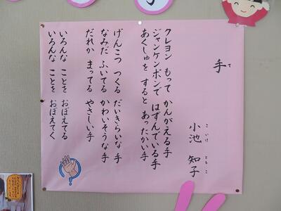 学習コーナーでは、詩がかわりました。素敵な手の詩です。家庭学習のコーナーも見て欲しい内容です。