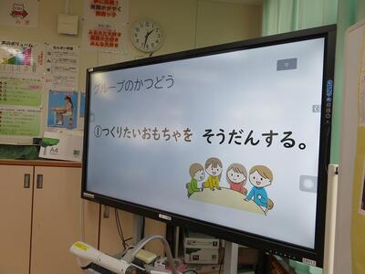 2時間目、1年生は国語、説明文の授業でした。「じどう車くらべ」という説明文です。子どもたちが説明文のつくり(説明の仕方)を学習していました。