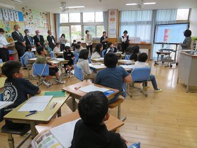 本日、南阿蘇村の研究発表会が本校と中学校で行われました。南西小にも、阿蘇郡市から学校関係者を始め、多くの方々が参会されました。今日は、1年生生活、5年生算数、6年生社会の授業を見ていただきました。授業の様子です。