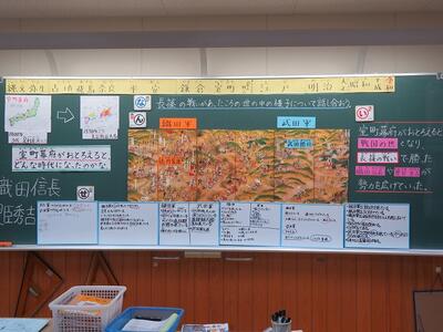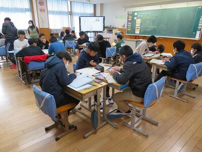 先週木曜日まで学級閉鎖だった6年生、学級閉鎖開けの先週金曜日は、みんなそろっていませんでしたが、今日は、みんな元気なようです。1時間目6年生社会、班で学習を進めていました。
