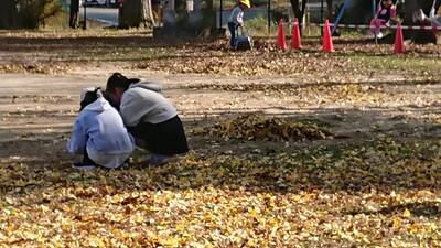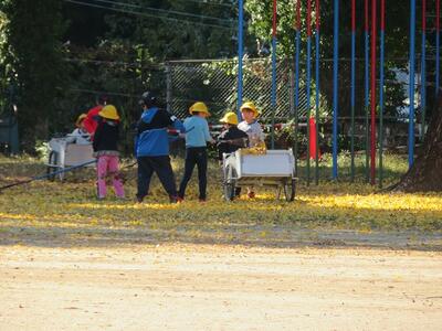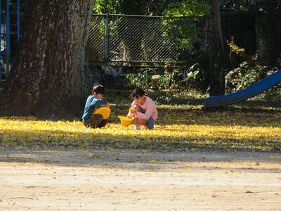 昼休みは、今日も落ち葉を集める子どもたちがいました。
