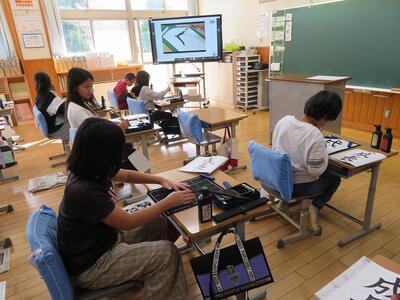 5時間目、5年生は書写でした。「成長」という課題を書いていました。