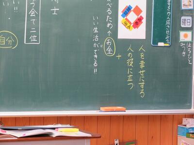 5年生道徳、働くことについて考えを深めていました。子どもたちもお金を得ることだけが働くことの意義ではないと気づいていきました。