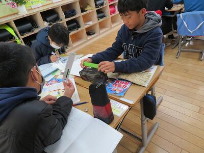 1時間目の授業です。3年生が作文を頑張っていました。説明文「すがたをかえる大豆」のまとめの学習です。本やインターネットを使って調べたことを作文にしていました。どんな食品がどのようにすがたを変えるのかをアイディアマップ等も活用しながら作文を書いていました。