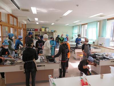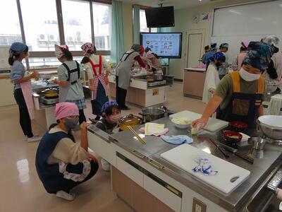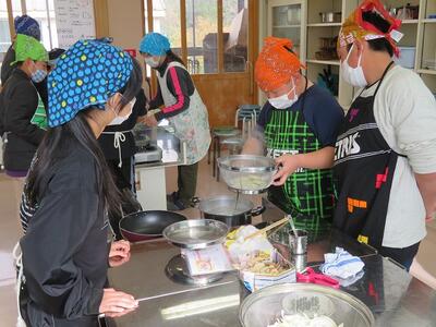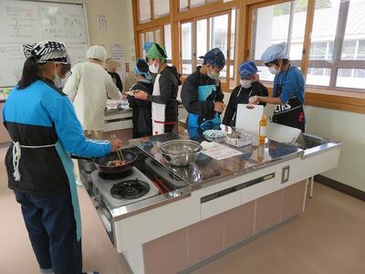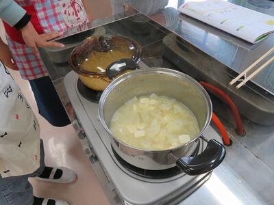 4時間目、6年生は家庭科の調理実習でした。高学年家庭科では、調理実習は、子どもたちが楽しみにしている内容です。協力しながら自分たちが決めたものを作っていました。