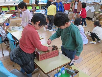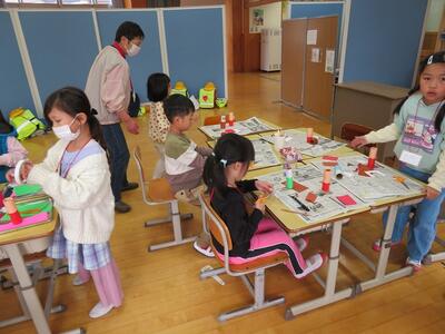 1年生も年長さんもとても楽しんでいました。年長さんのためにおもちゃづくりをして、楽しませようと頑張る1年生がとても頼もしかったです。