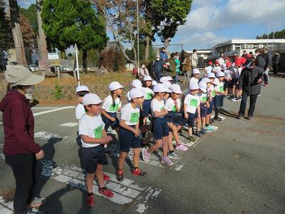学校の周りを中学年(約1.5km)、低学年(約1.0km)、