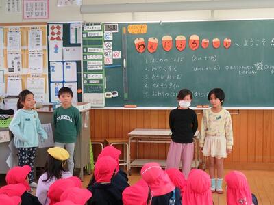 式が始まると、4年生代表の2人が2学期に頑張ったことや3学期に頑張りたいことを発表しました。