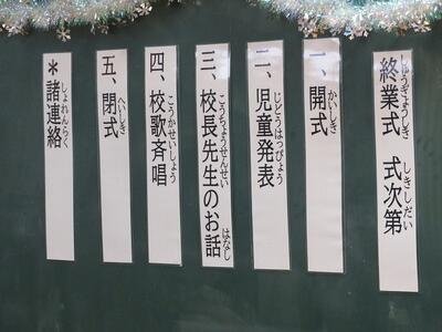 二人とも4年生らしい、しっかりと振り返りができた発表でした。終業式では、冬休みの生活や健康についても担当の先生方からお話がありました。
