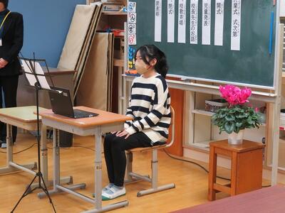 式が始まると、4年生代表の2人が2学期に頑張ったことや3学期に頑張りたいことを発表しました。