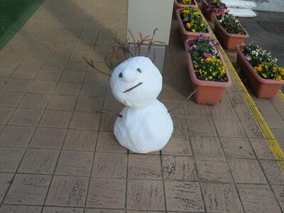 プレゼントといえば、今年も昨年に引き続き、かわいい雪だるまが出現しました。プレゼントかも知れません。昨夜のうちに職員玄関前に置いてありました。かわいい雪だるまに子どもたちも先生方も癒やされました。