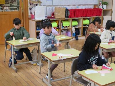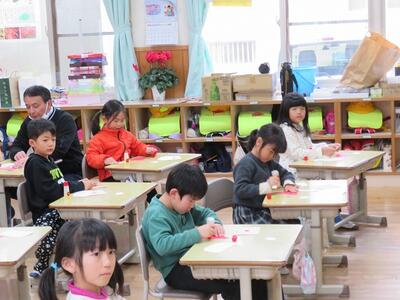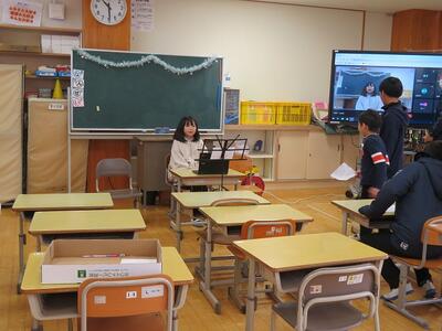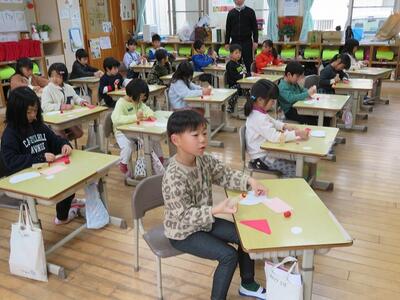 2時間目、1年生の外国語活動はクリスマスにちなんだ活動でした。サンタさんを作ったりゲームをしたりしました。指導される先生方もいろいろなクリスマスグッズで雰囲気を盛り上げていただき、1年生も大喜びでした。