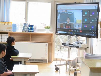 終業式は、多目的室からのリモートで行いました。式の前に表彰を行い、代表の子どもたちに表彰状を渡しました。