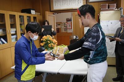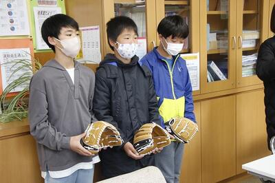 グローブ3個の意味は、もう知られているとおりです。みんなで野球をして欲しいという願いからです。グローブや合成皮革でとても柔らかく、子どもたちが使いやすくなっています。子どもたちも楽しみ待っていた大谷選手のグローブ。「野球しようぜ」とメッセージに書かれていたように大事に使っていきたいと思います。大谷選手、ありがとうございました。