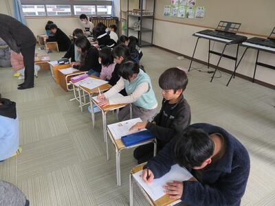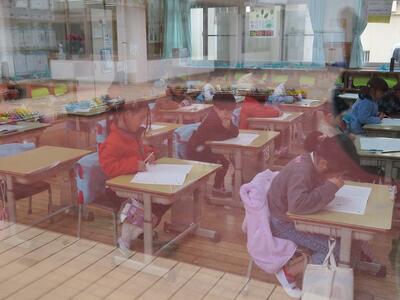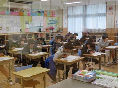 今日の5・6時間目、5・6年生は英検が行われました。大事なテストなので離れて撮りました。