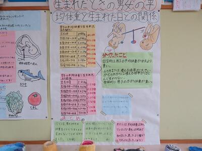 人の誕生の学習は、命の尊さや命のつながり、自分の命の大切さなどを学ぶことができる学習です。5年生のまとめにふさわしい学習でした。