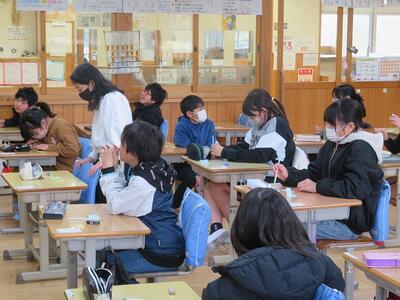 ちょうどこの日、中学校から3人の先生方が授業を見に来られていました。真剣に集中して学ぶ6年生の様子にとても感心しておられました。6年生もまとめにふさわしい、素晴らしい授業でした。