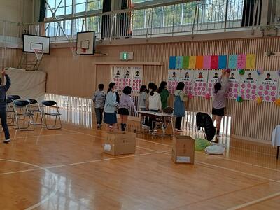 お世話になった6年生のため、みんなで会場づくりを頑張りました。