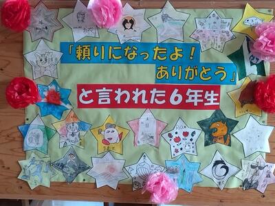 学級目標「『頼りになったよ、ありがとう』と言われた6年生」の達成に向けて頑張ってきた卒業生、この1年間いろいろな場面で学校をリードしてくれました。すばらしい卒業生です。