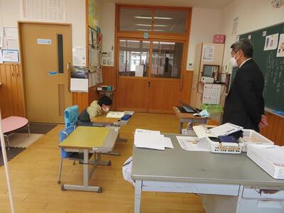 今日は、修了式でした。昨日からの寒さもあり、リモートでの式となりました。各クラスで修了証を渡しました。1年から5年生まで立派な態度で修了証を受け取ることができました。昨日の卒業式での学びが活かされた姿でした。多目的ホールから1年生と5年生の代表が頑張ったことや春休みや次の学年の目標などを発表しました。1年生は楽しかったこと生活科と体育科の学習のこと、5年生は頑張った漢字練習、自分のことは自分でしたこと、最上級生になって手本となることなどを発表しました。
