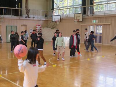 昼休み、6年生が企画した「思い出プロジェクト『在校生と遊ぼう』」が始まりました。この企画は6年生の「卒業プロジェクト」の一つとして考えられたものです。卒業を前に在校生との思い出づくりとして、今週から来週にかけて行われます。遊びはドッチボールでした。今日は1年生でした。1年生は6年生と遊べるので大喜び、6年生は1年生を楽しませようと一生懸命でした。